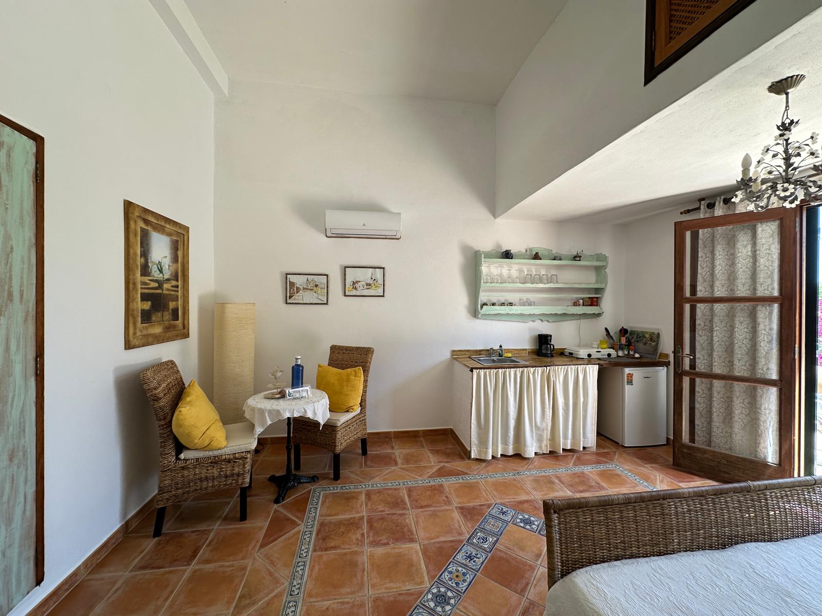 Apartamento acogedor ubicado en la finca Can Negre, perfecto para quienes buscan una escapada íntima y tranquila en Mallorca. Con sus 35 m², este estudio ofrece todo lo que necesitas para una estancia cómoda y relajante: sala de estar acogedora con una zona de dormitorios, cocina americana totalmente equipada y baño con ducha.